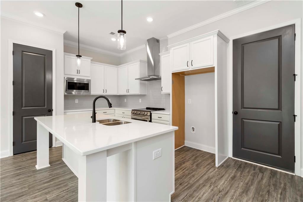 This gorgeous new construction townhome is ready now! Step into open concept living with soaring 10’ ceilings, sleek LVP flooring, designer lighting, and bold black hardware finishes. The chef’s kitchen shines with 42” white cabinets, quartz countertops, subway backsplash, stainless appliances, and a walk-in pantry.