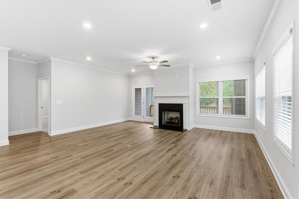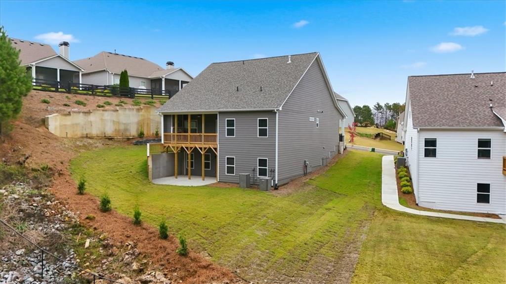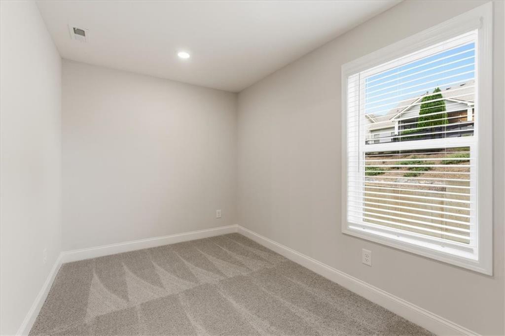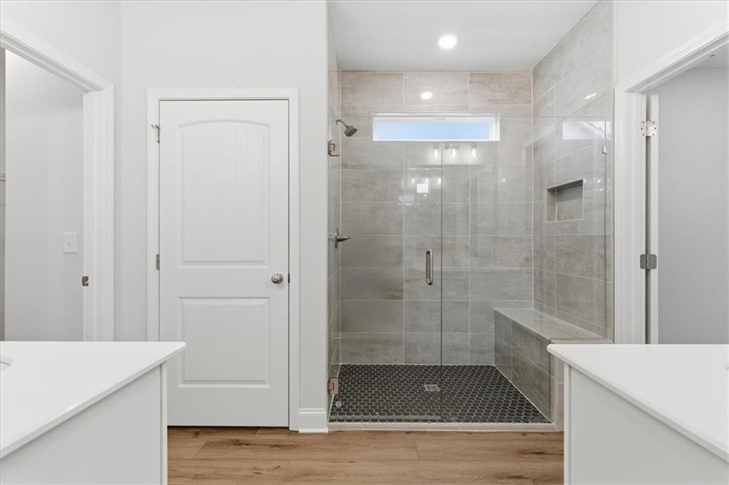 The Owner’s Suite is a true retreat, offering direct access to the covered back deck with an outdoor fireplace, two large walk-in closets, a tiled walk-in shower with glass enclosure and built-in seat, quartz countertops in “Arctic White,” and raised comfort-height toilet seats. Enjoy peaceful views of the wooded backyard from your covered outdoor living space. Additional features include a two-car garage with extra storage and a low-maintenance 0.22-acre lot.