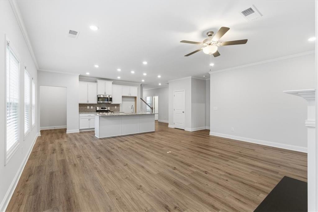 40K PRICE REDUCTION! Plus $12,000 Seller Flex Cash- use towards closing costs or rate buydown. Discover this beautifully designed Rabun A Ranch Plan with over 3200SF in the heart of the 55+ active adult community, Stratford at NatureWalk. This thoughtfully upgraded home features 2 bedrooms and 2 full bathrooms on the main level, 1 bedroom and bath on the upper level, plus a fully finished basement with an additional bedroom, full bath, and a media room—perfect for guests, hobbies, or flexible living. The heart of the home is the open-concept kitchen, complete with “Cotton” painted cabinets, “Ornamental White” granite countertops, stainless steel appliances, and an oversized center island, all flowing seamlessly into the great room with a slate-surround fireplace and LVP flooring in “Tattered Barnboard.”